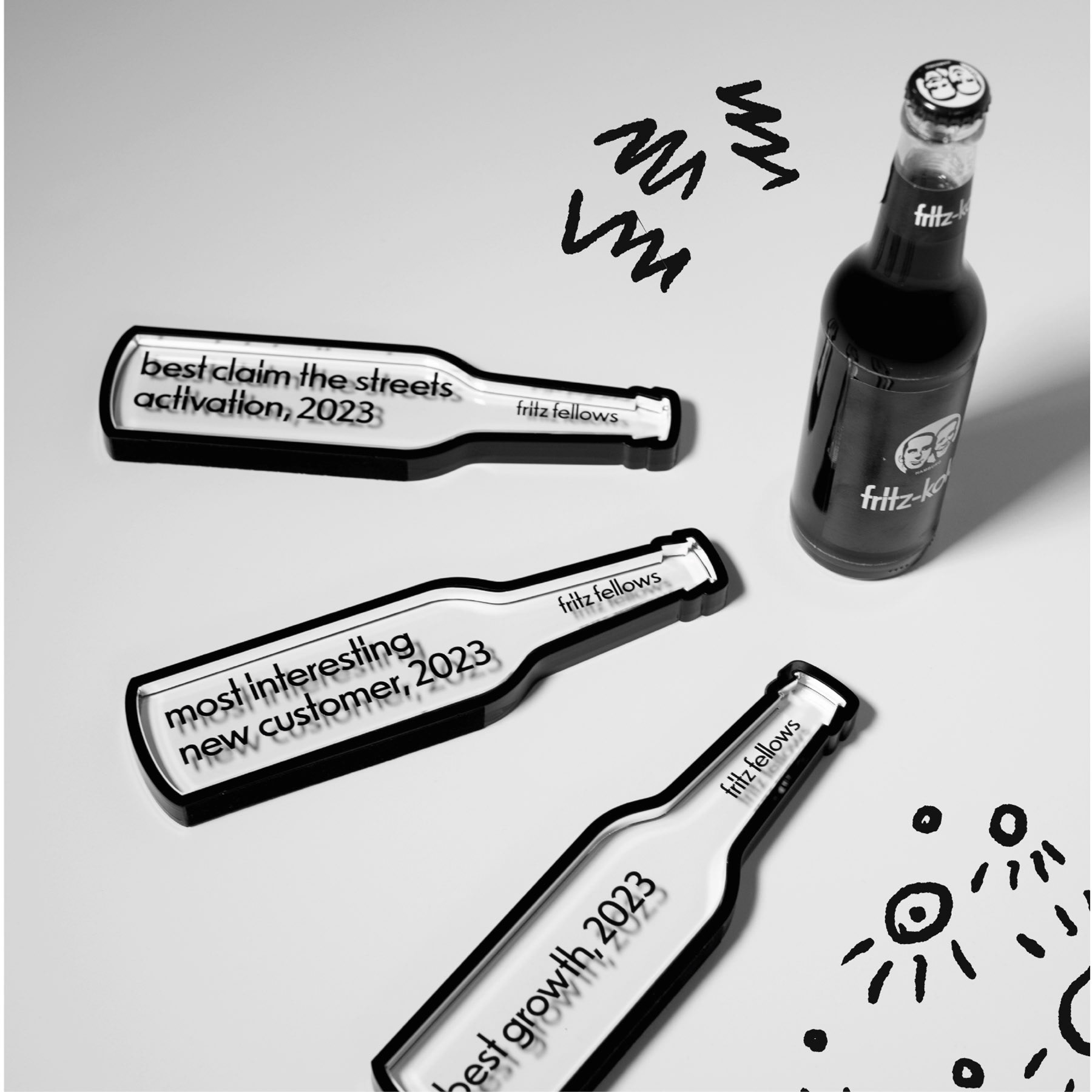 Gestaltung und Entwicklung des neuen physischen Awards für die Veranstaltung »Fritz Fellows 2023« in Amsterdam. Bei diesem Event wurden Vertriebspartner von Fritz-Kola in verschiedenen Kategorien geehrt.