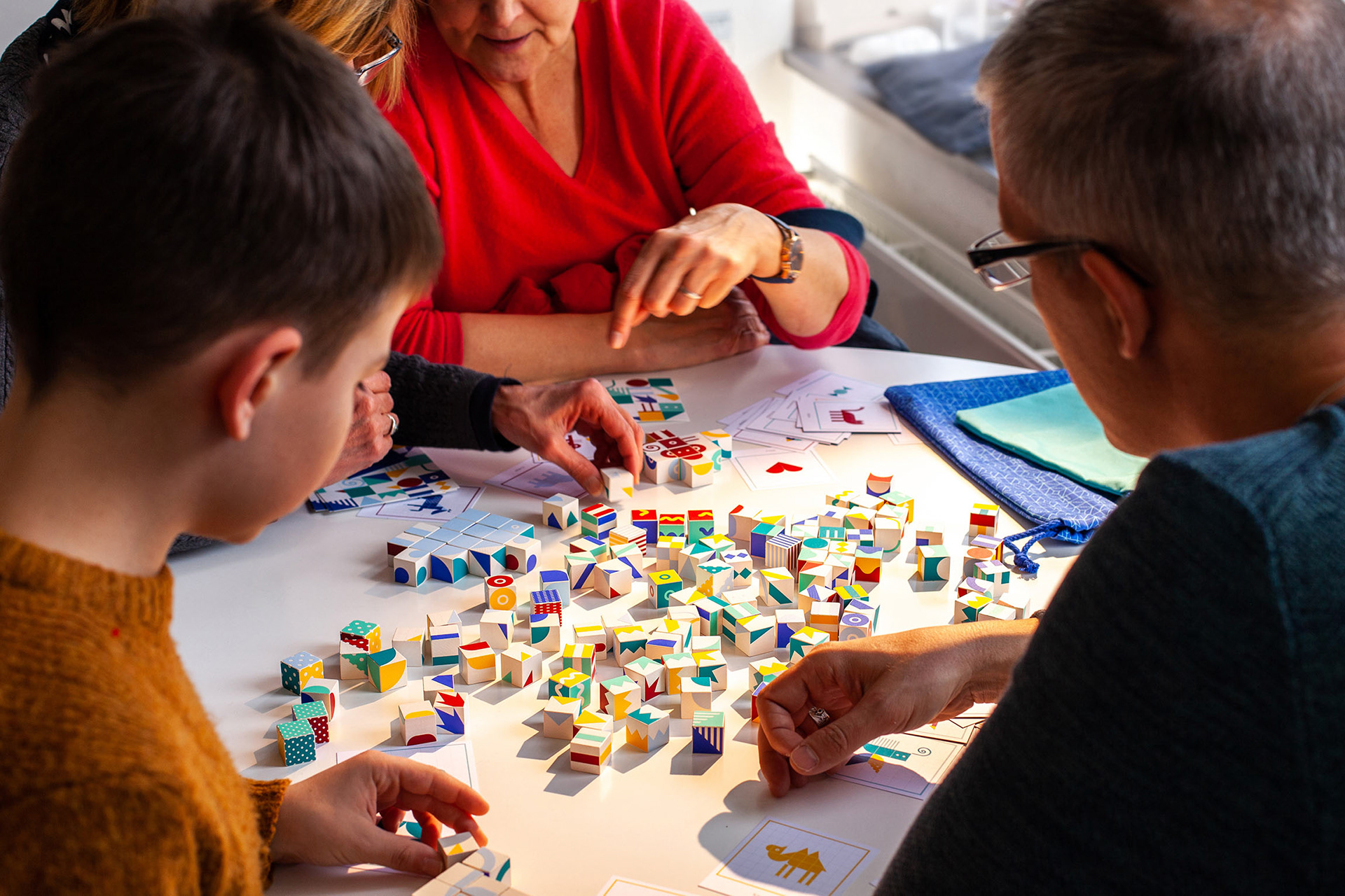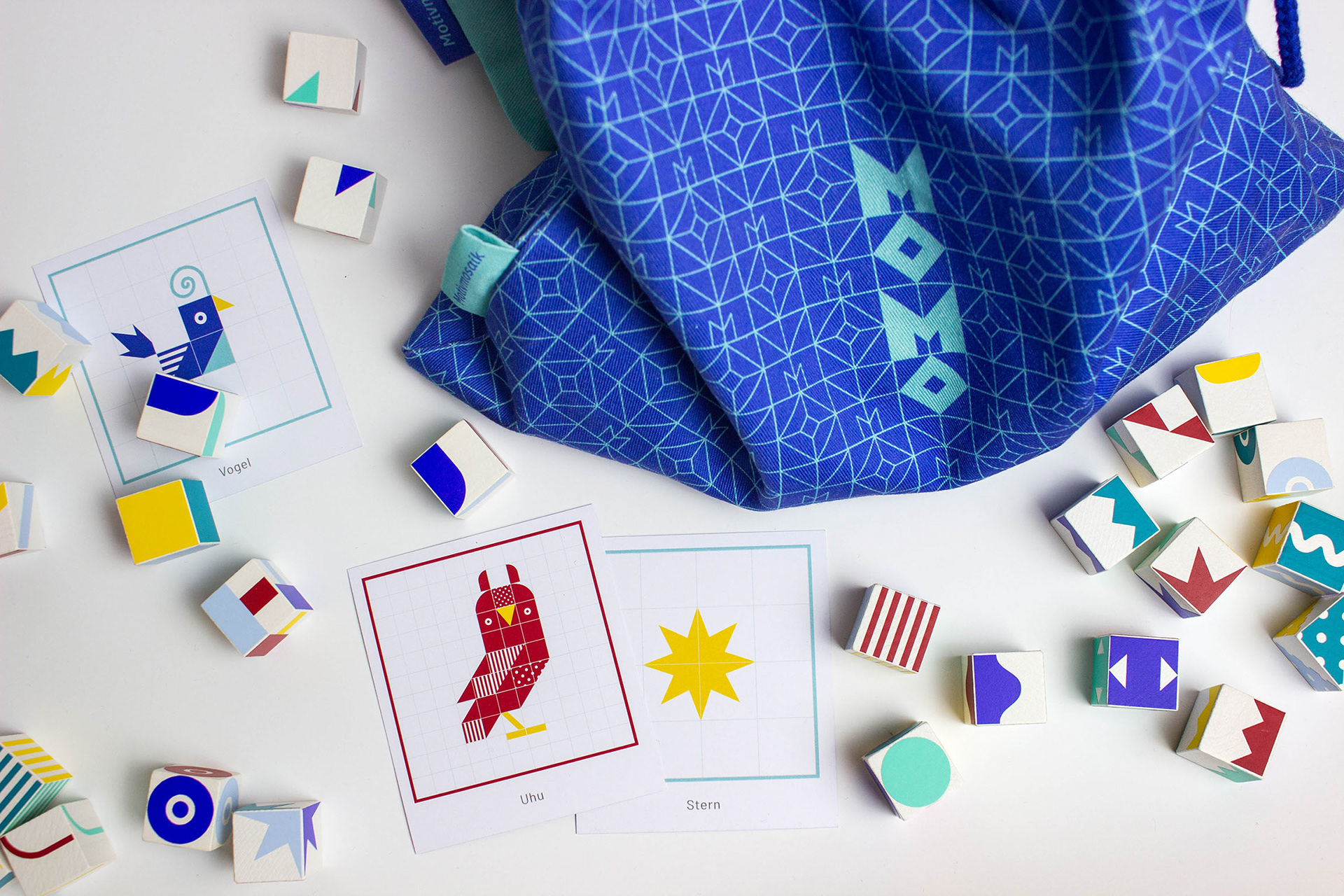 Die Würfel können entweder frei zu eigenen Kreationen gelegt werden, oder vorgegebene Motive in unterschiedlichen Schwierigkeitsgraden werden anhand von Spielkarten nachgebaut.