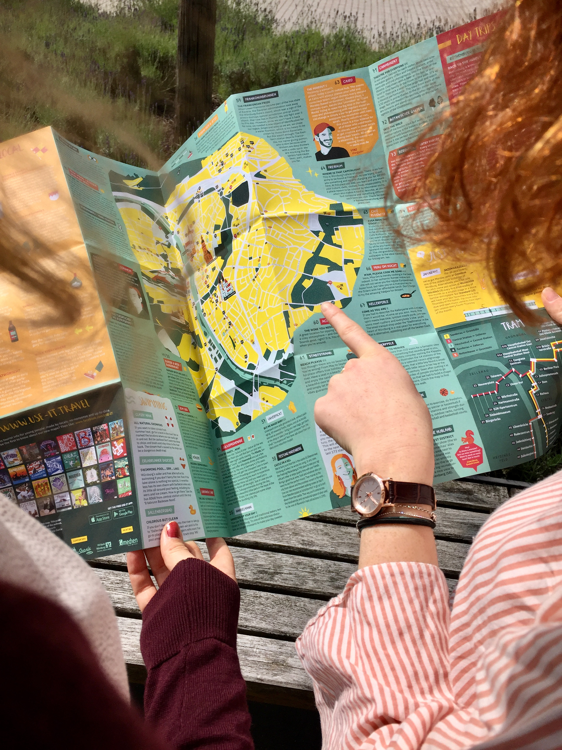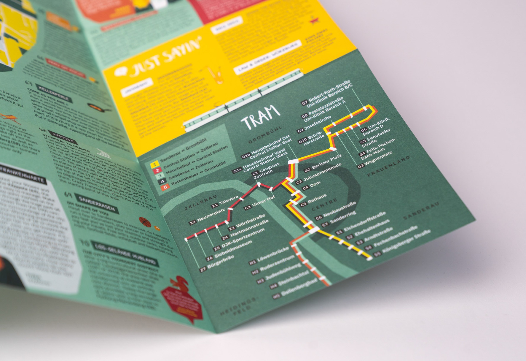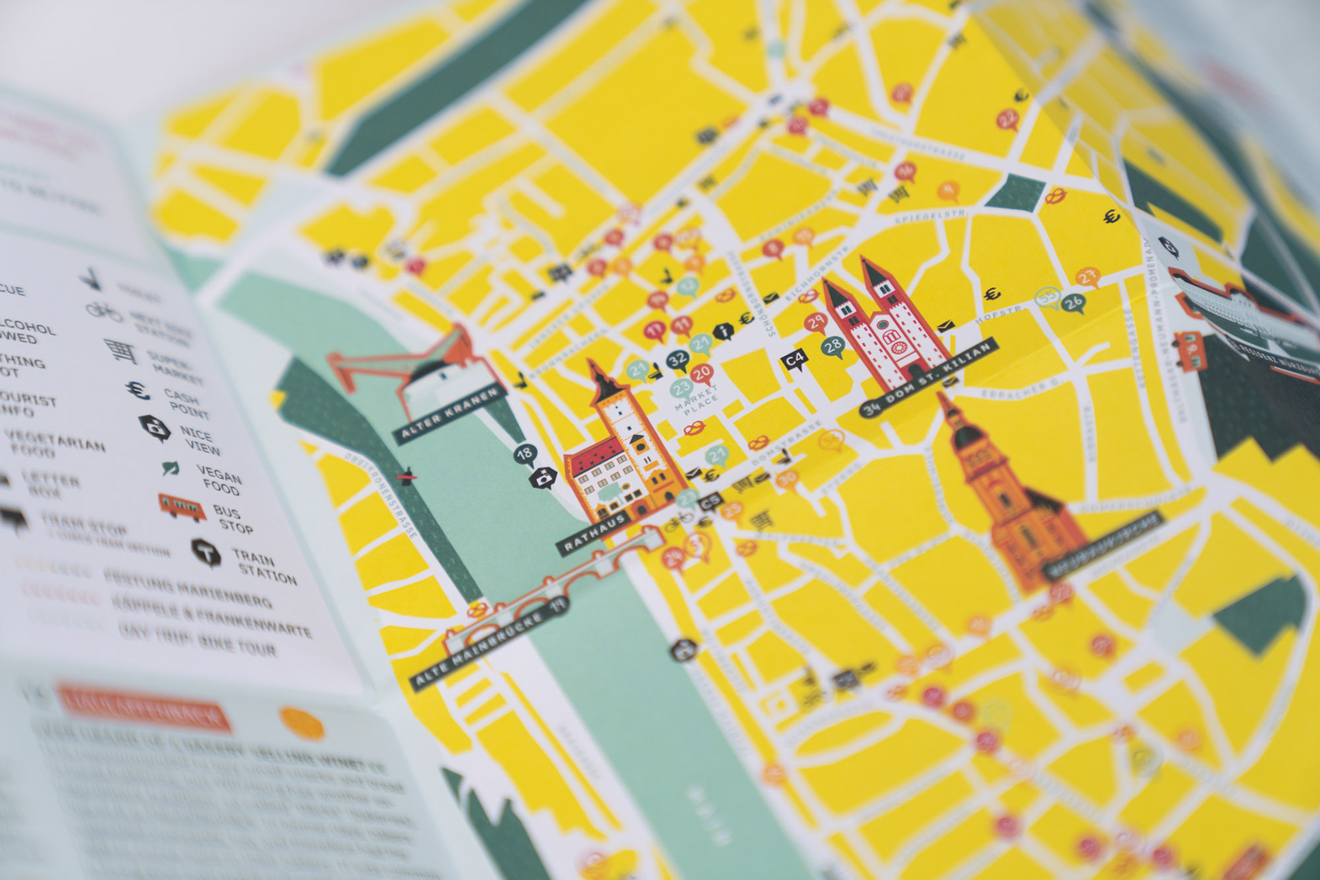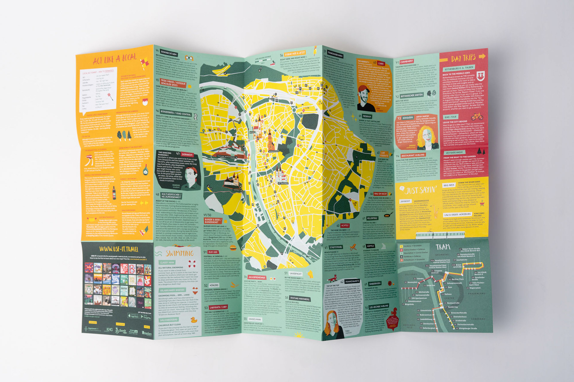 Konzeption und Design eines neuen, jungen Stadtplans für Würzburg. Diese Art der werbefreien und kostenlosen Karten werden unter der Organisation »USE-IT Europe« in verschiedenen Städten Europas eigenständig von Einheimischen erstellt. Die Karten richten sich an junge Tourist:innen, welche die Stadt auf humorvolle und charmante Art erkunden wollen.